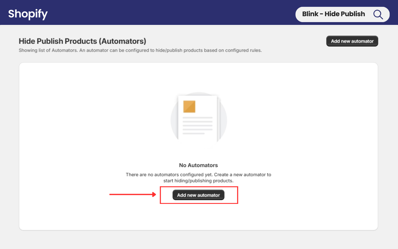 Get started by clicking on the **Create Automator** tab. Upon clicking, the app will take you to the Hide Publish Products (Automators) tab.